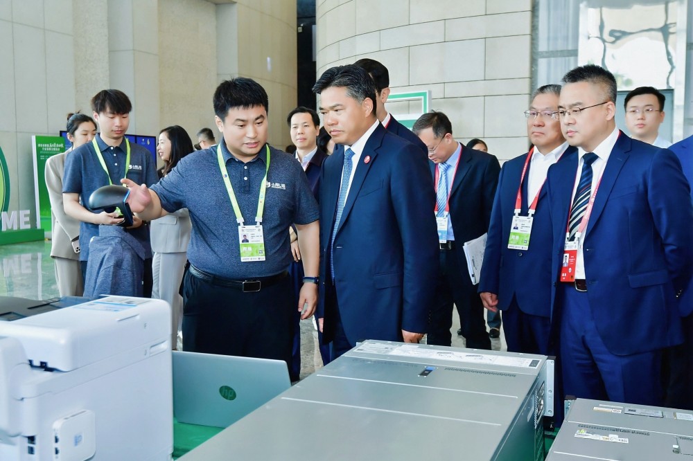 凌雄科技作为我国二手商品流通行业领军企业,受邀参加本届消博会期间举行的绿色消费主题活动外围展,并全面展示其创新打造的IT设备全生命周期管理服务解决方案,以及近两年在AI算力设备租赁、机器人租赁等新业态领域所取得的突出成果。对此,商务部领导在巡展期间莅临凌雄科技展位充分了解凌雄科技亮点、优势和优秀经验,对于凌雄科技创新绿色消费模式所取得的丰硕成果给予高度关注。